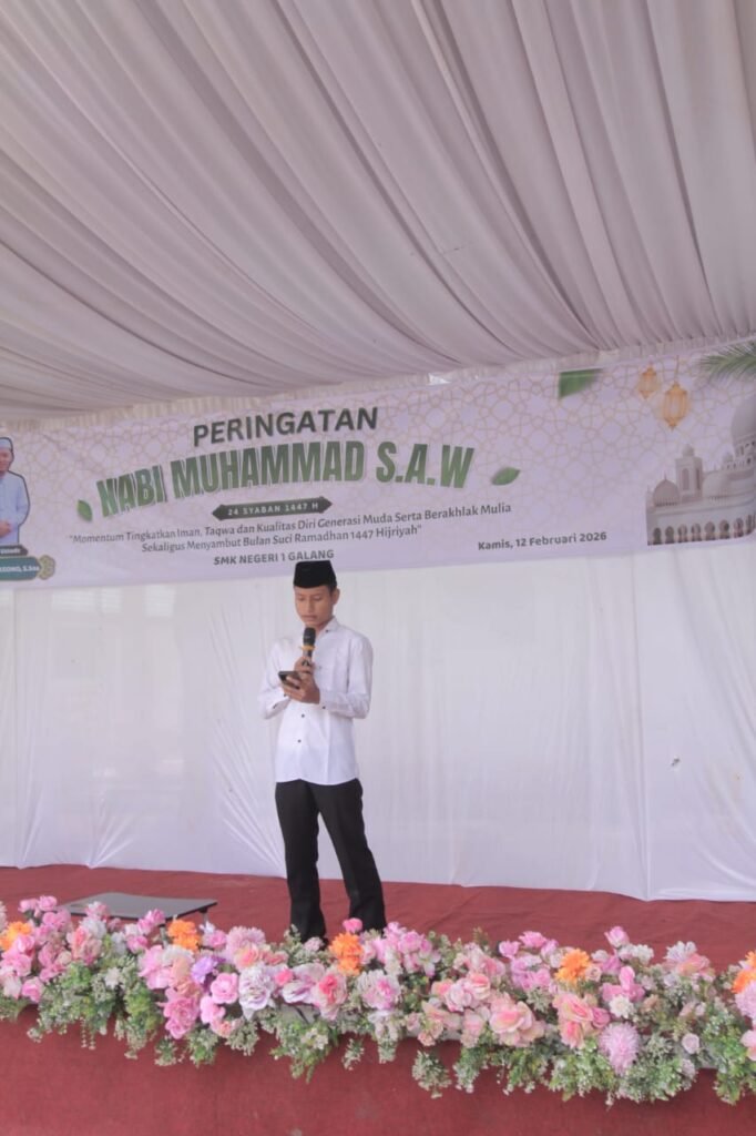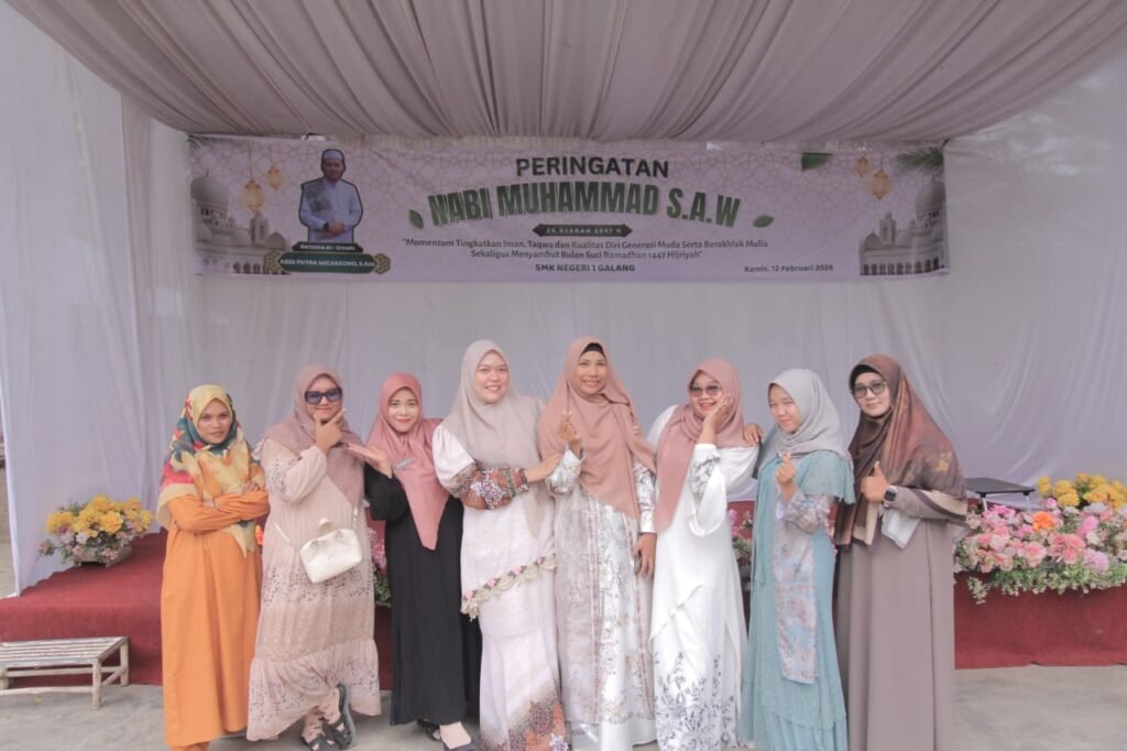 Galang – SMK Negeri 1 Galang menyelenggarakan kegiatan Peringatan Isra Mi’raj Nabi Muhammad SAW sebagai bentuk refleksi dan peningkatan keimanan seluruh warga sekolah. Kegiatan ini dilaksanakan dengan penuh khidmat dan diikuti oleh kepala sekolah, dewan guru, staf, serta seluruh siswa-siswi.